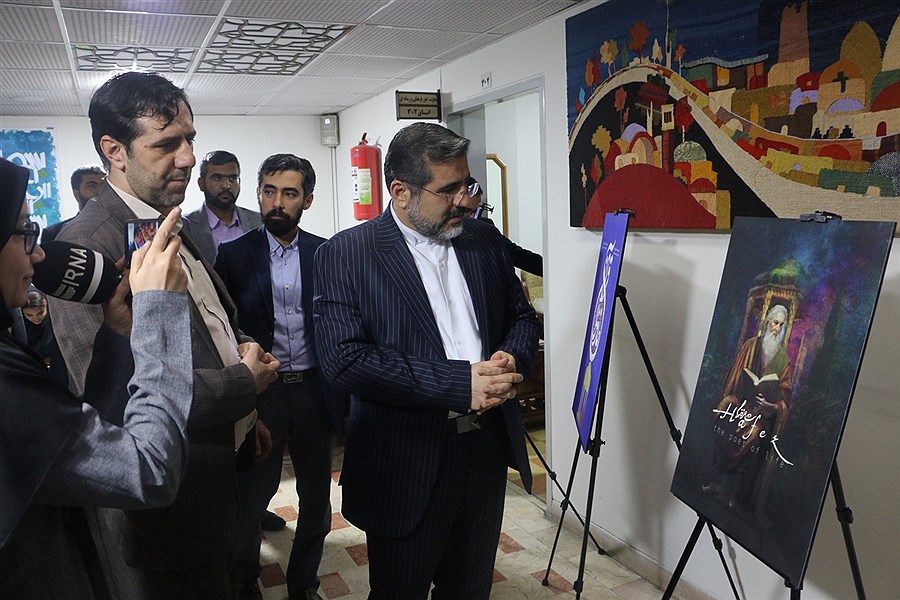 تصویر رونمایی وزیر فرهنگ از طرحواره های برگزیده یاد روز حافظ