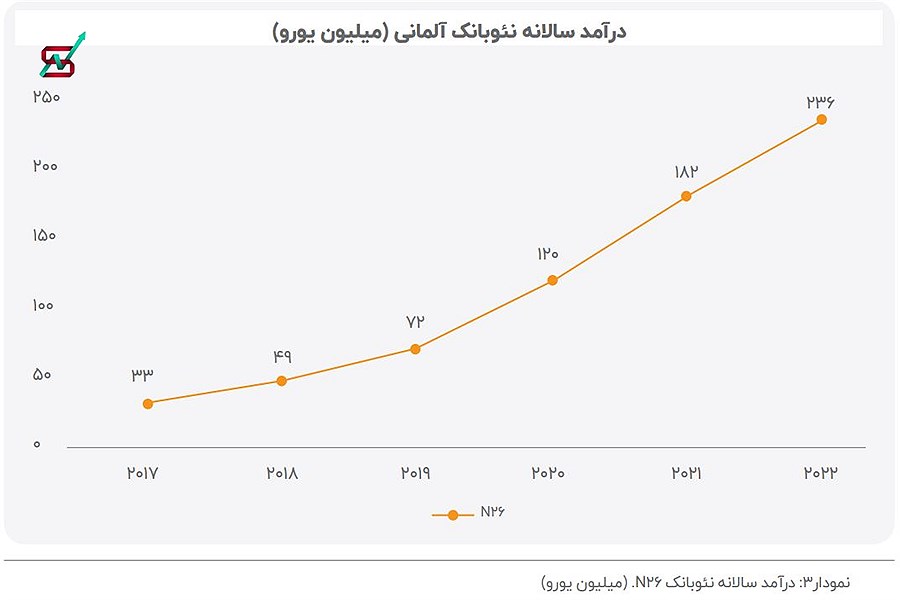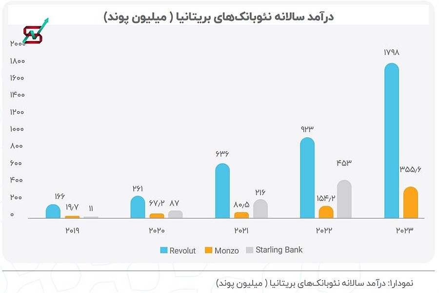 نرخ رشد درآمد این نئوبانک از سال 2017 تا 615 درصد 2022 بوده است.