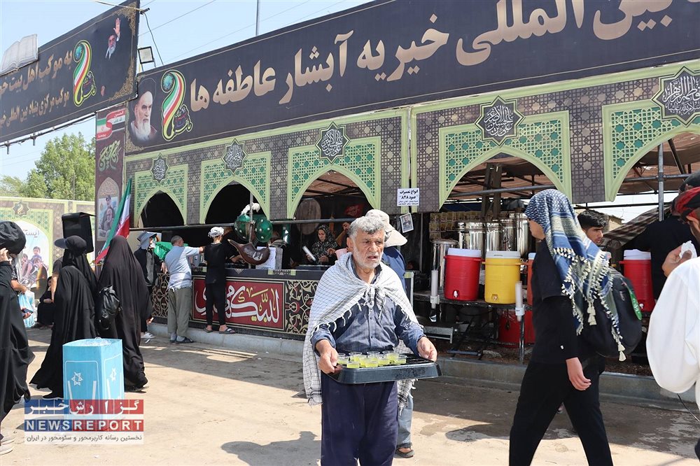 خدمت رسان موکب آبشار عاطفه‌ها در مسیر اربعین 1404 از پنجره دوربین (17 مردادماه)